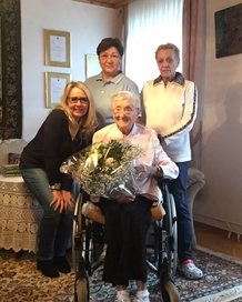 Es ist schon etwas Besonderes, wenn der erste Geburtstagsbesuch vom Antonius PflegeDienst im neuen Jahr bei einer Patientin zum 101.Geburtstag stattfindet. Noch dazu wo wir am 15.1. 2008 - vor 12 Jahren - die Betreuung von Frau Ursula C. aus Niederösterreich übernommen haben. Ihre Freude ist groß, als sie unsere Gebietsleiterin Frau Claudia Vogl besucht und ihr im Namen vom Antonius PflegeDienst einen Blumenstrauß überreicht. Sie ist mit beiden slowakischen PersonenbetreuerInnen Maria M. (am Foto ) und Magdalena C. sehr zufrieden und wünscht sich, daß sie noch lange Zeit in ihrem schönen und vertrauten Heim verbringen kann.